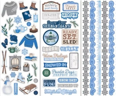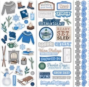 Add a snow kissed touch to cold-weather layouts with the Winter Bliss Decorative Bundle! This kit includes all the decorative products in the Winter Bliss collection, so being stuck inside has never been more fun! Pair these products with your photos of winter activities like making snow angels and building snowmen, ice skating, sipping tea and taking snowy strolls.