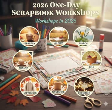 Join us for a day of creativity and fun at our 2026 One-Day Scrapbook Workshops! Whether you're a seasoned pro or a complete beginner, you'll leave with a gorgeous, personalized layout and a boost of inspiration.