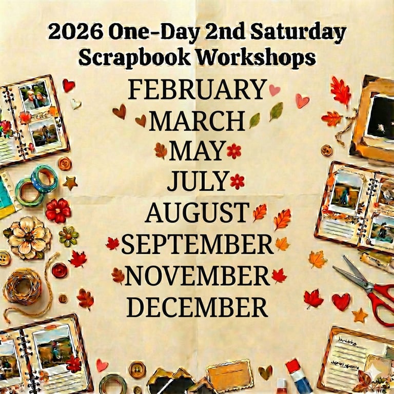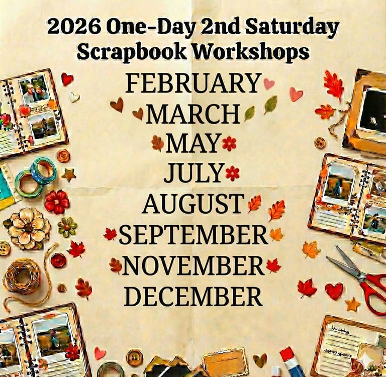 Join me for a day of creativity and fun at my 2026 One-Day Scrapbook Workshops! Whether you're a seasoned pro or a complete beginner, you'll leave with a gorgeous, Simple Page Kit and a boost of inspiration.