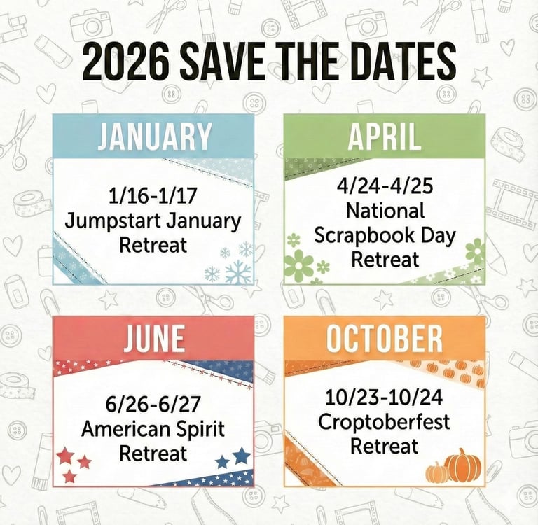 Get ready to wave your flags and open your albums! Our American Spirit Retreat in South Jordan is the perfect time to celebrate the land of the free and the home of the... Scrappy! Whether you’re documenting family reunions, summer parades, or the heritage stories that define your family tree, this retreat is all about honoring our history while making new memories.