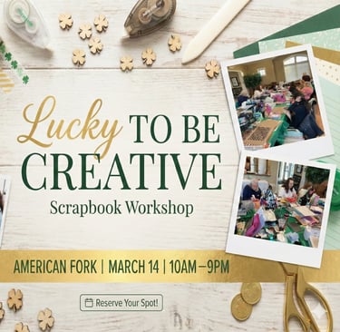 Pinch Me, I’m Scrapbooking! Join me for a full day of scrapbooking, storytelling, and "lucky" inspiration! Whether you are working on old family photos or recent memories, this workshop is designed to provide the space and time you need to get those pages done.