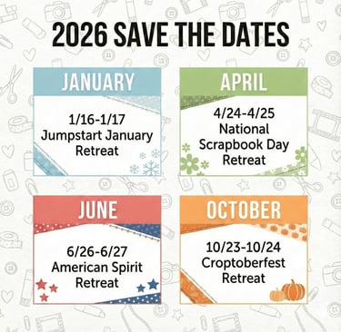 Registration is open for my first South Jordan retreat of the new year! Let's start 2026 with finished pages, fresh inspiration, and a ton of fun! This retreat is the perfect post-holiday gift to yourself! Spots are limited to 34, and this first event of the year always fills up quickly. Don't wait!