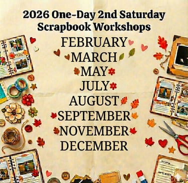 Join us for a day of creativity and fun at our 2026 One-Day Scrapbook Workshops! Whether you're a seasoned pro or a complete beginner, you'll leave with a gorgeous, personalized layout and a boost of inspiration.